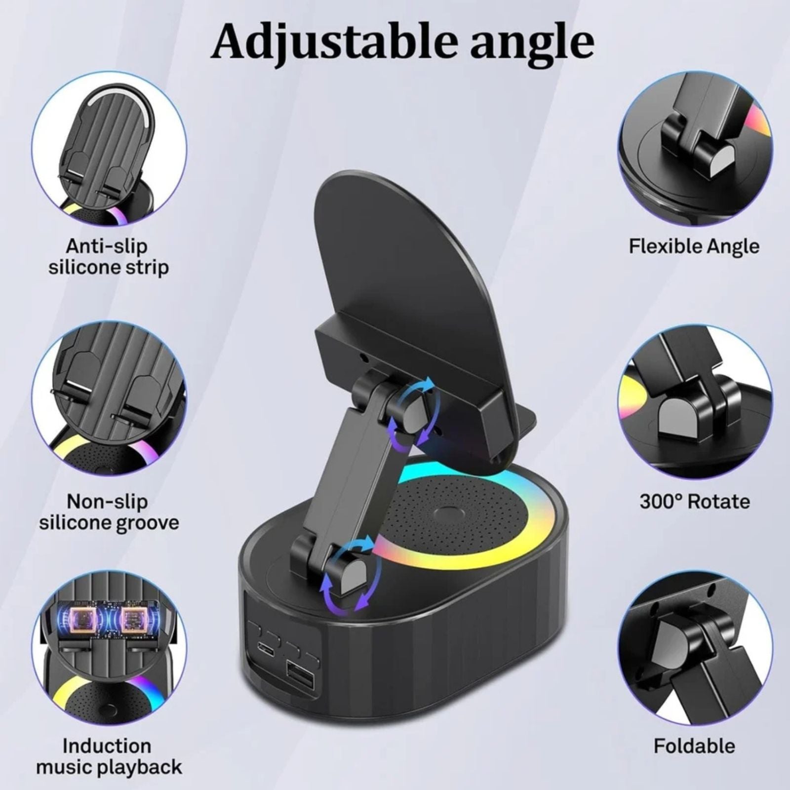 Wireless Induction Audio Bluetooth Speaker 5in1 Phone Holder Emergency Rechargeable
